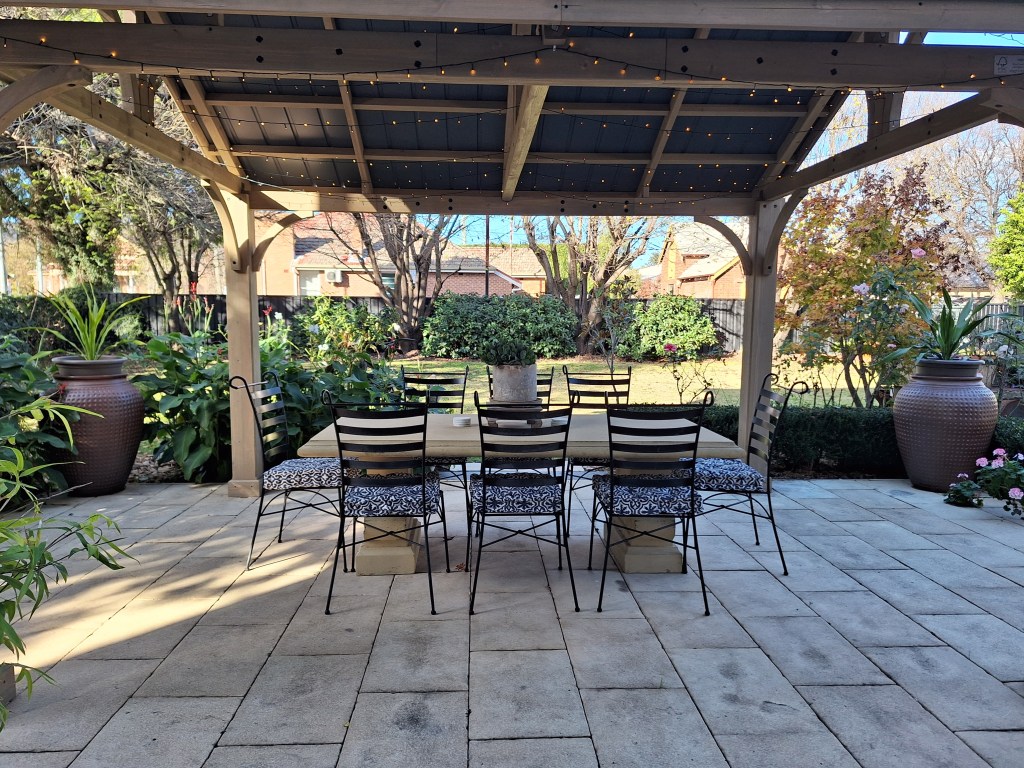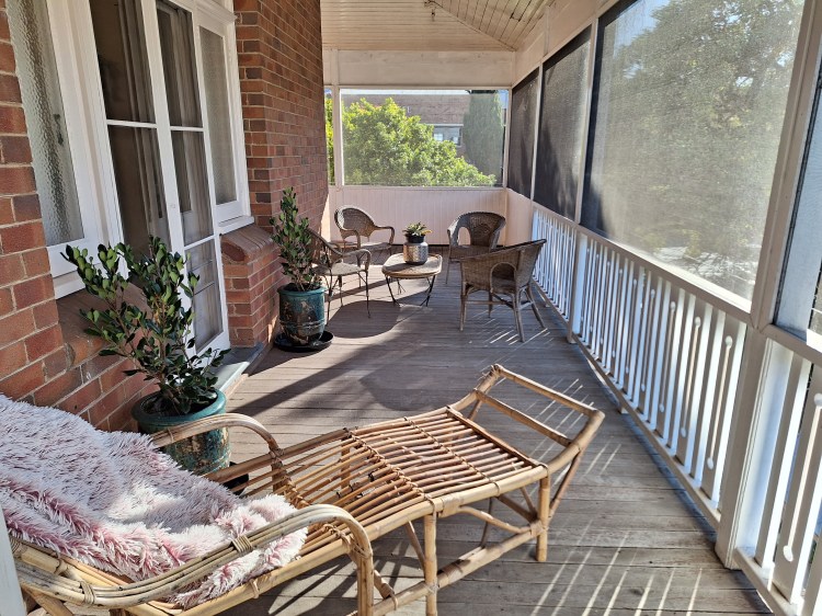 We have reverse cycle aircon, gas heating, electric blankets – the works. Of 1915 vintage, the property is fully refurbished inside and is cosily warm in the Winter and delightfully cool in the Summer. Bask in the shaded garden, which boasts a beautiful adornment of roses, shade trees, succulents and all manner of flora that will delight every sense! The outdoor paved and pergola area provides enough outdoor seating for up to 14 people and there are garden benches and easy chairs too!
